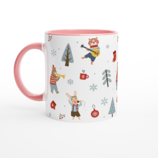 Mugs are made to snuggle in your hands, This Animal Musicians Christmas Pattern Ceramic Mug with Color Inside with Color Inside mug has a high-quality finish, and available in a variety of fun designs. We want you to drink your coffee or tea while looking at a cute animal mug! Kids will love them too, why not buy them something they enjoy?