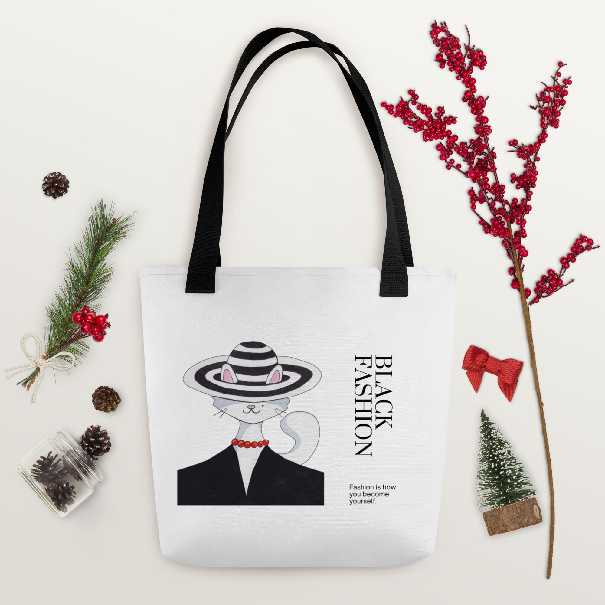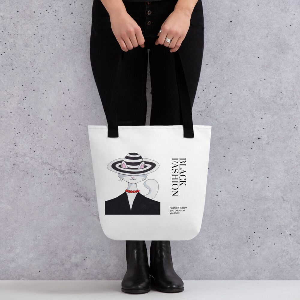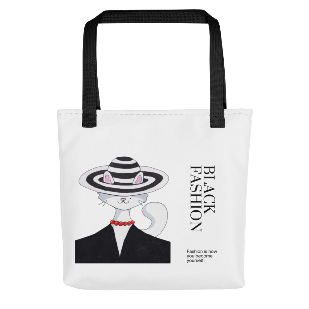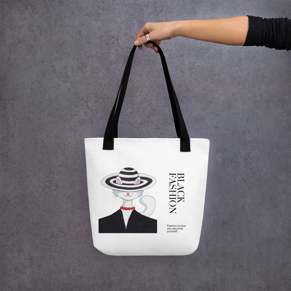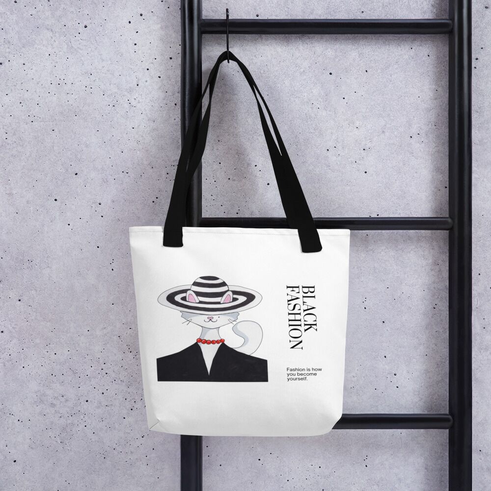 Back Fashion With Black Lady Cat Tote bag