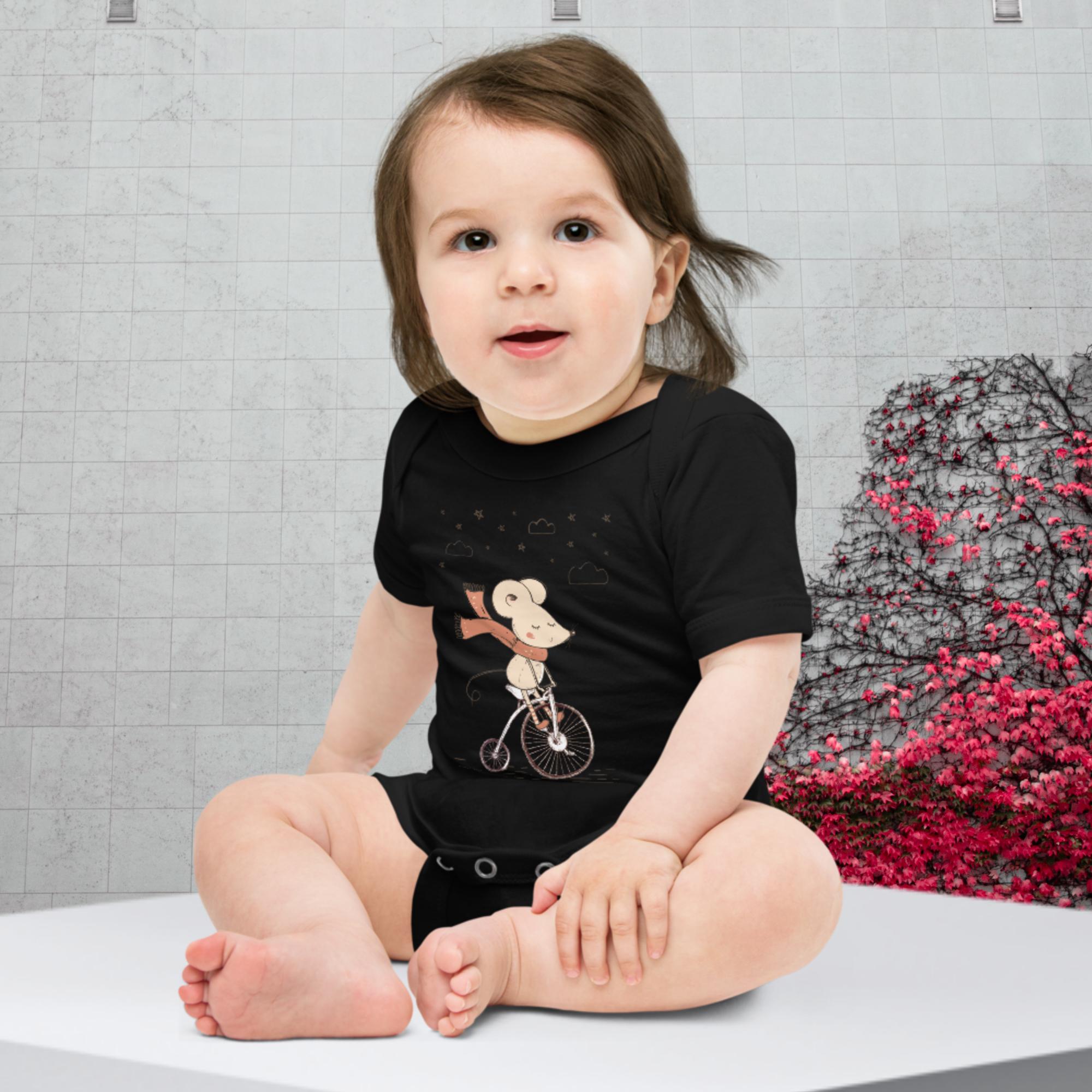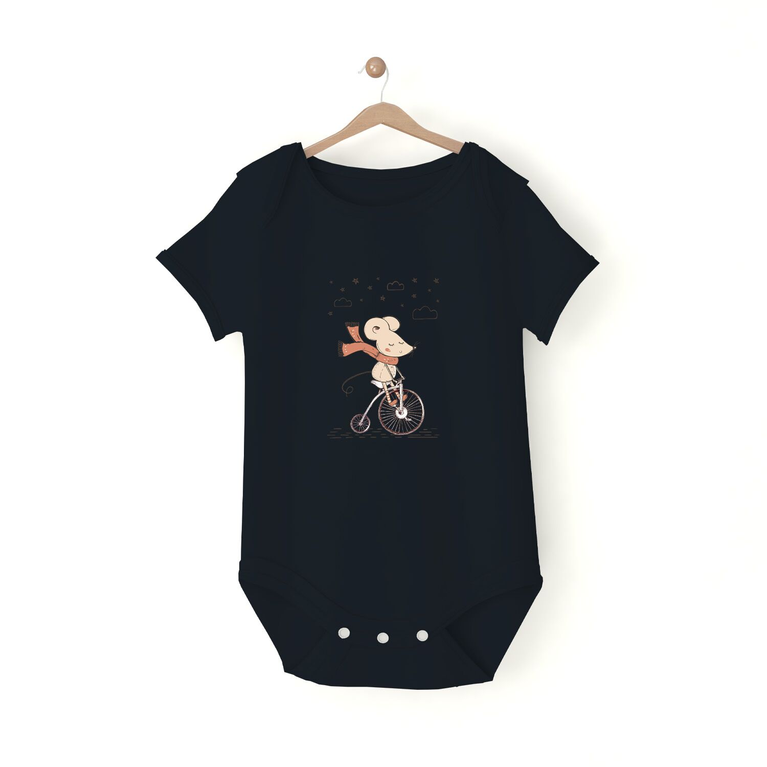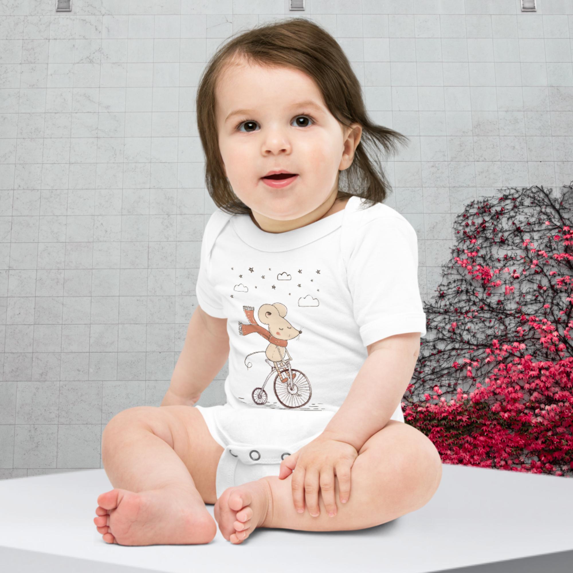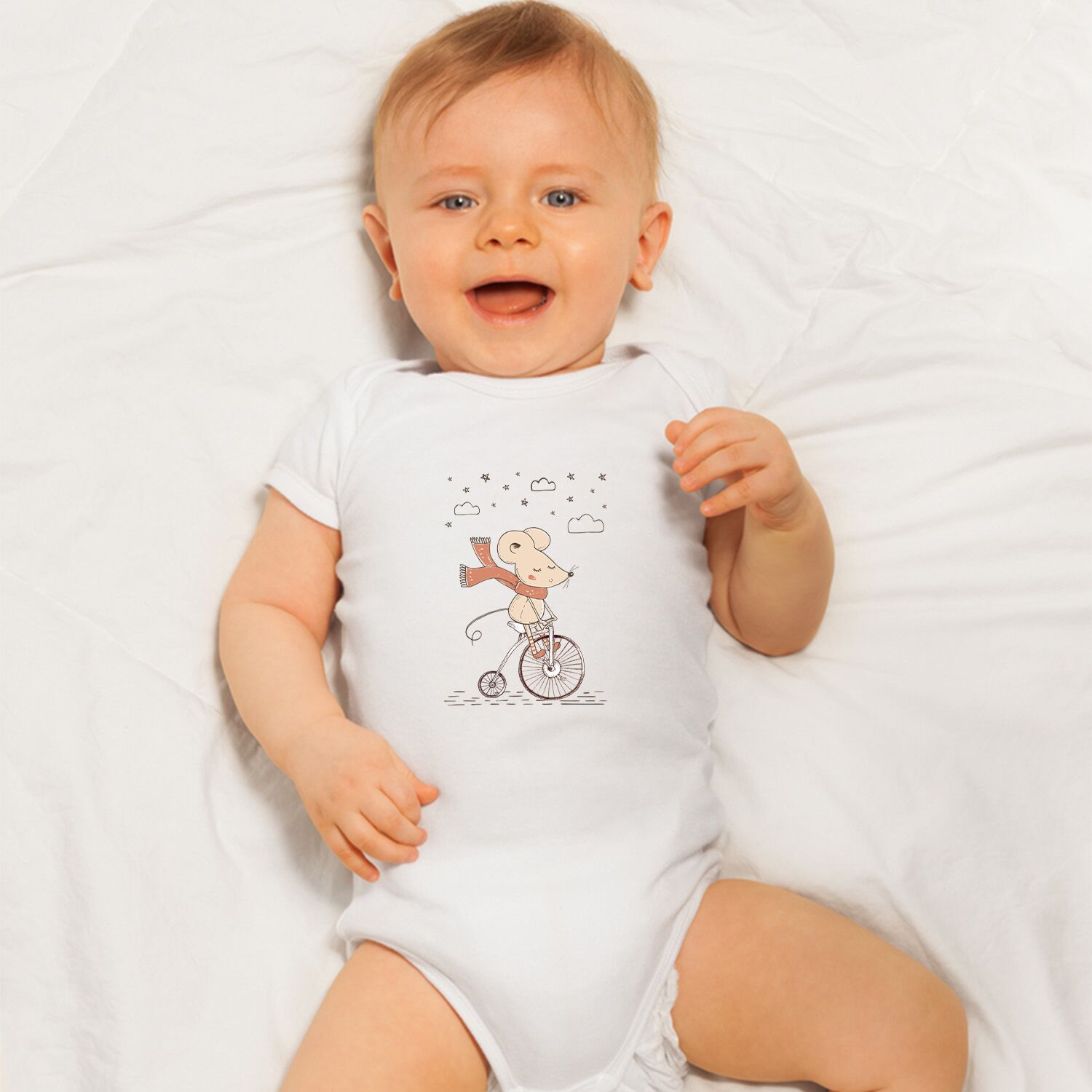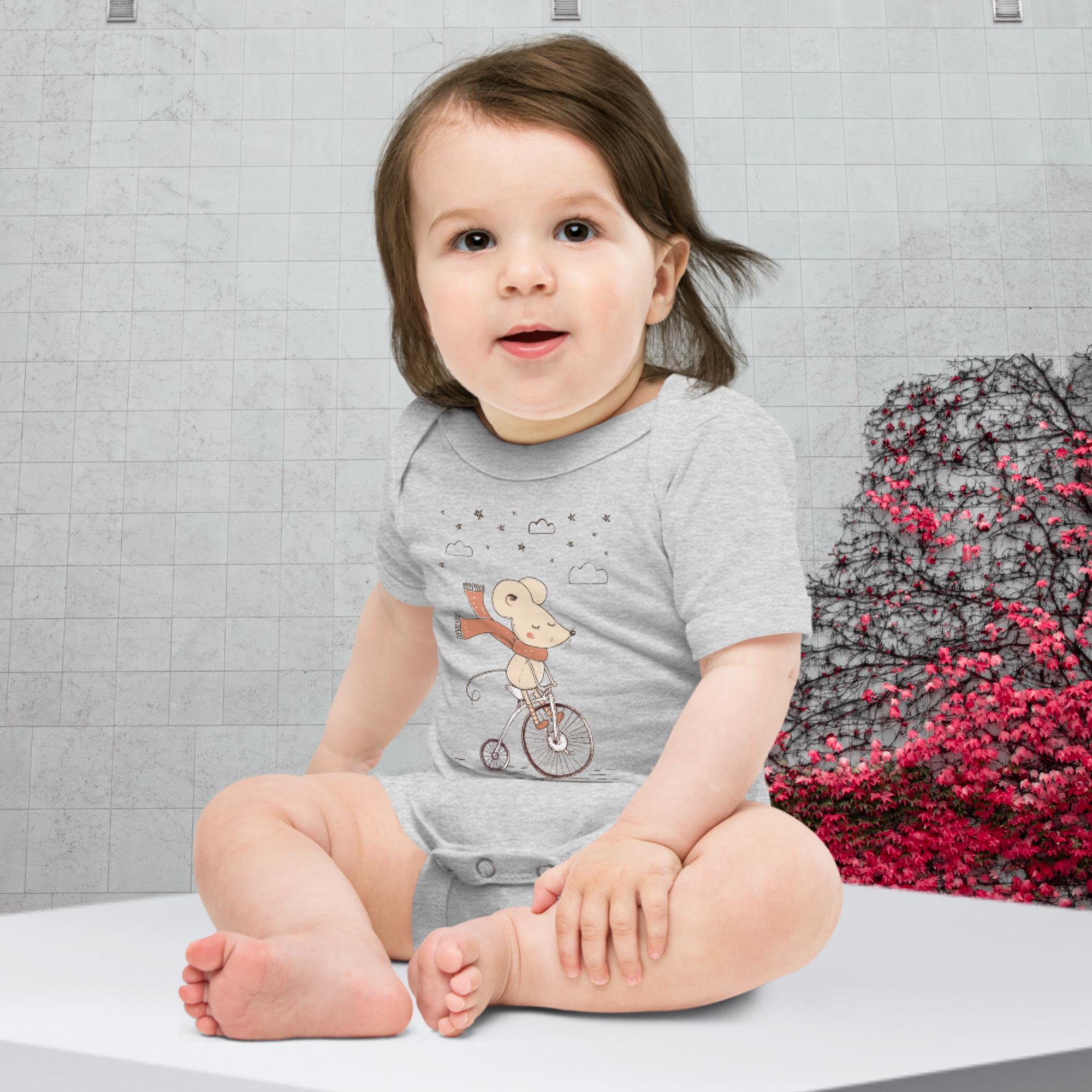 Mouse Riding Bicycle Baby Short Sleeve One Piece
