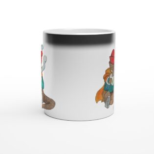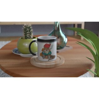 This mug has a black glossy finish when it’s empty. When a hot beverage is added, the mug reveals your beautiful artwork.