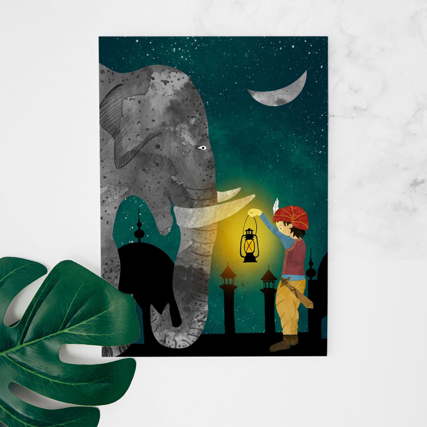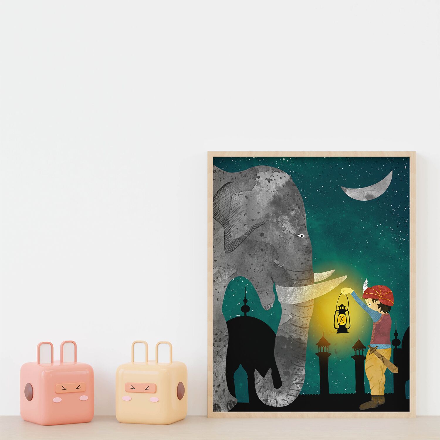 The perfect addition to your child’s room, this cute Arabic prince with an elephant poster is an ideal way to add a sense of calm and serenity to any space.