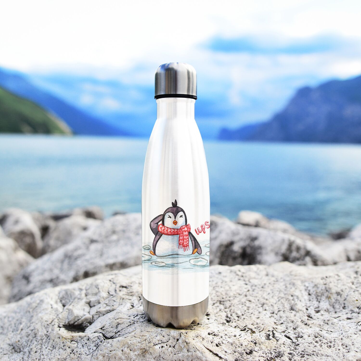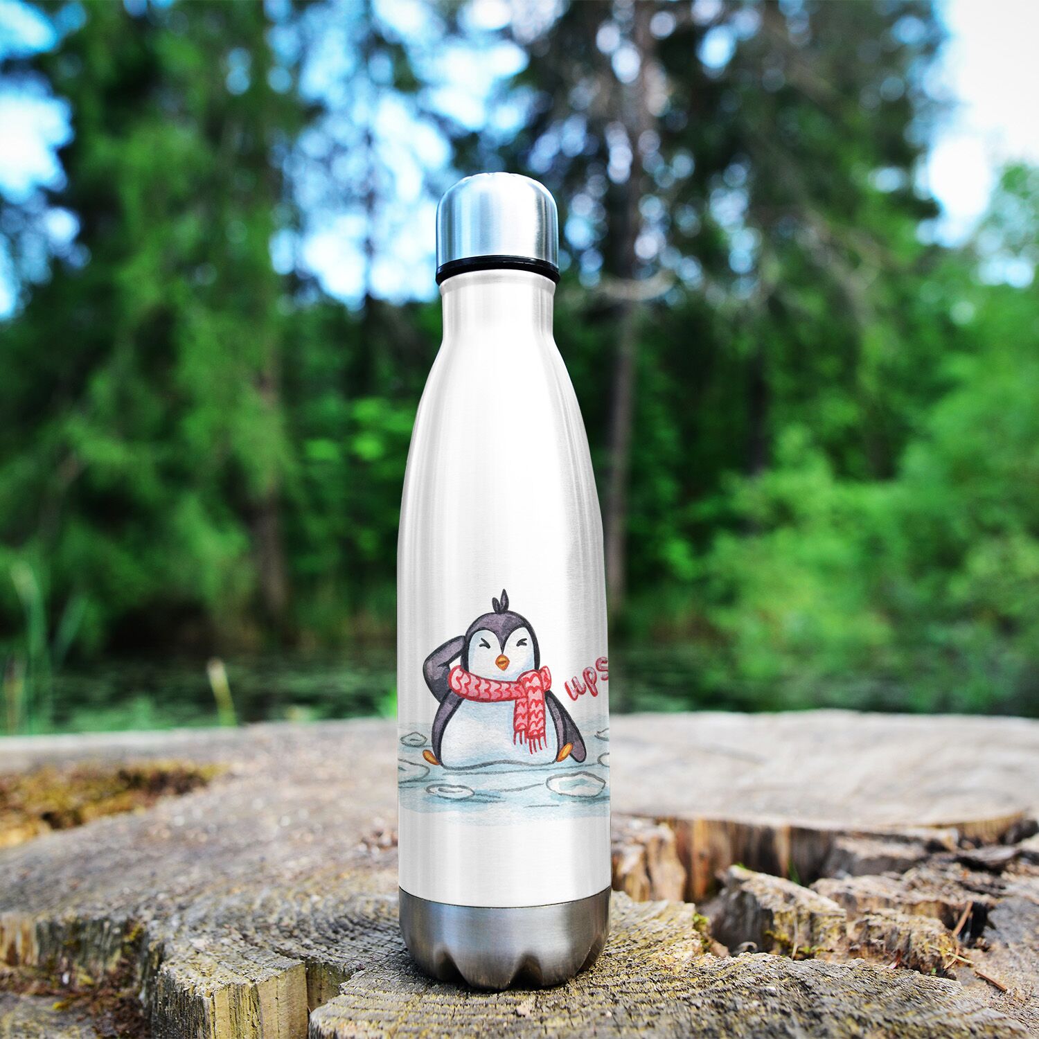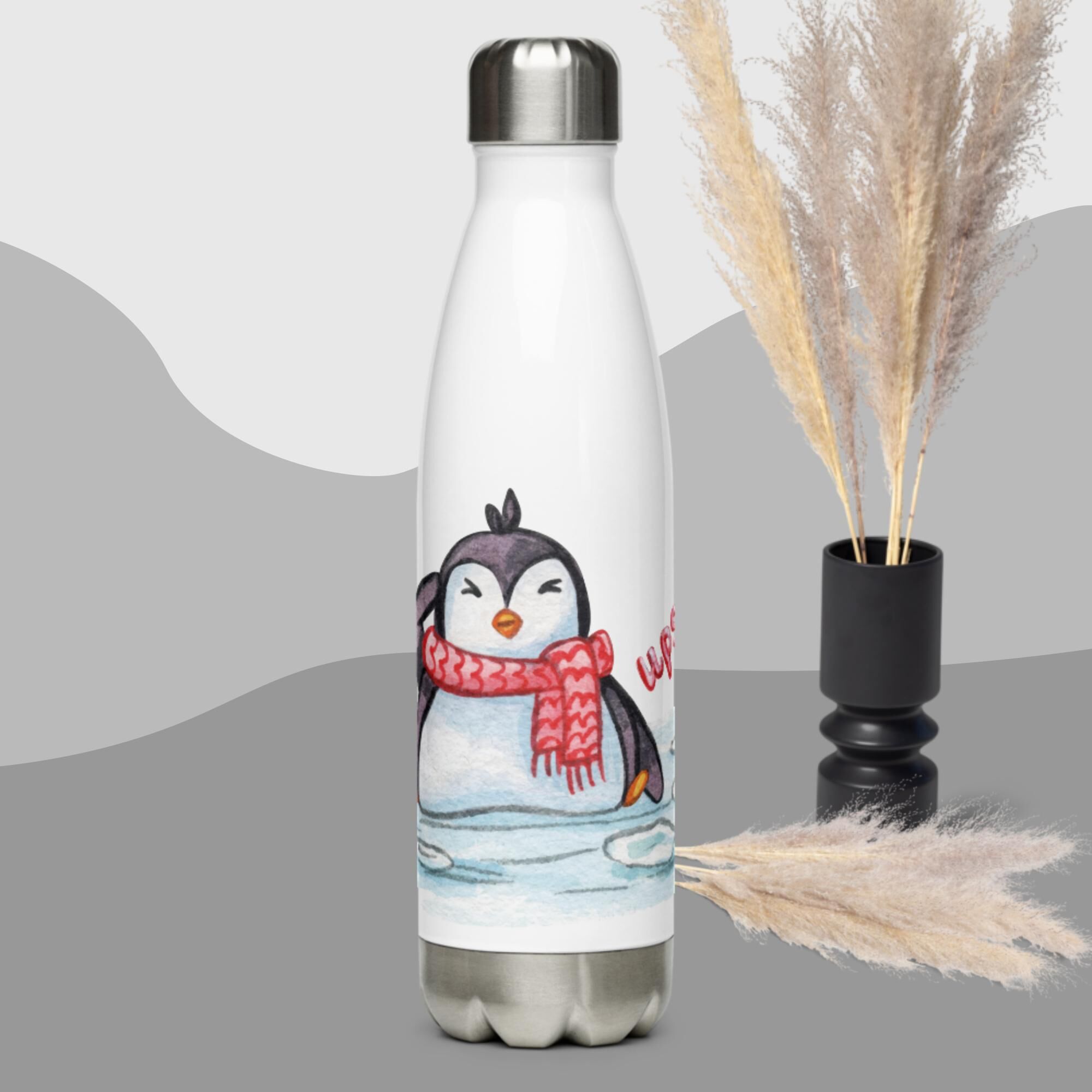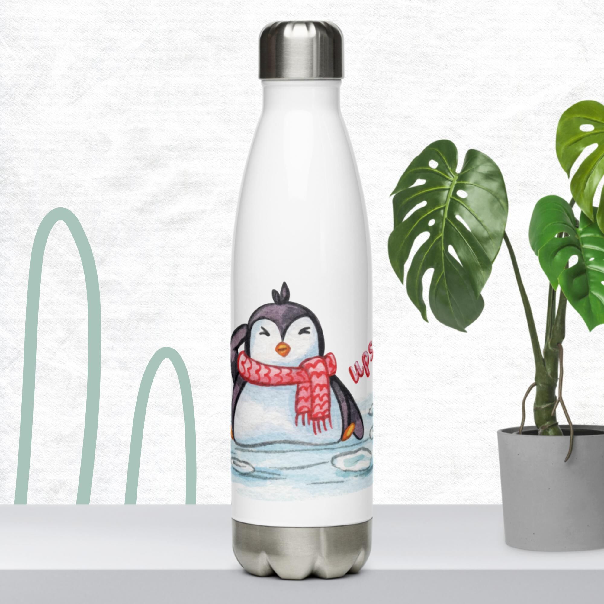 Funny Penguin With Ups Face Unique Artwork Stainless Steel Water Bottle