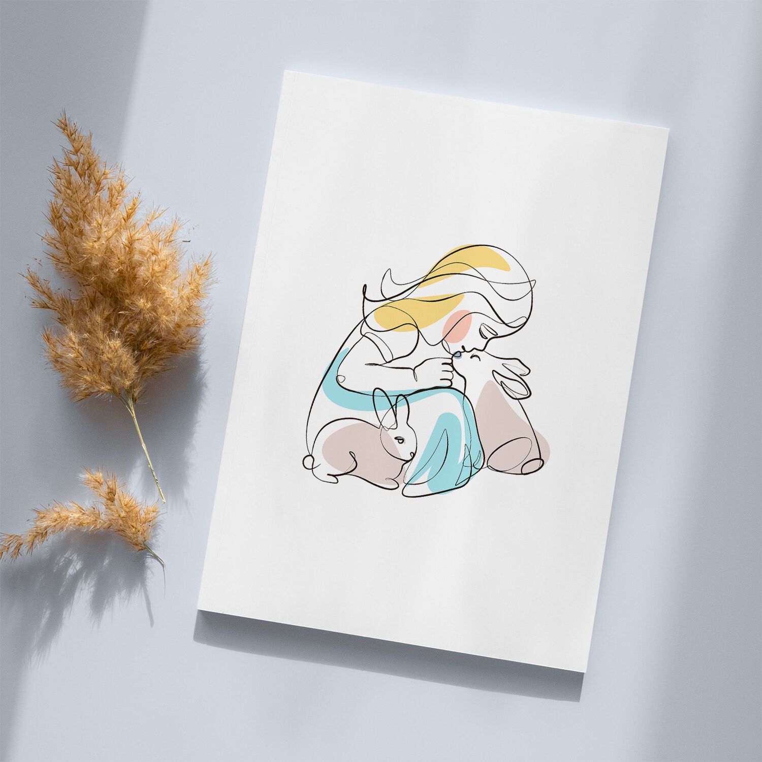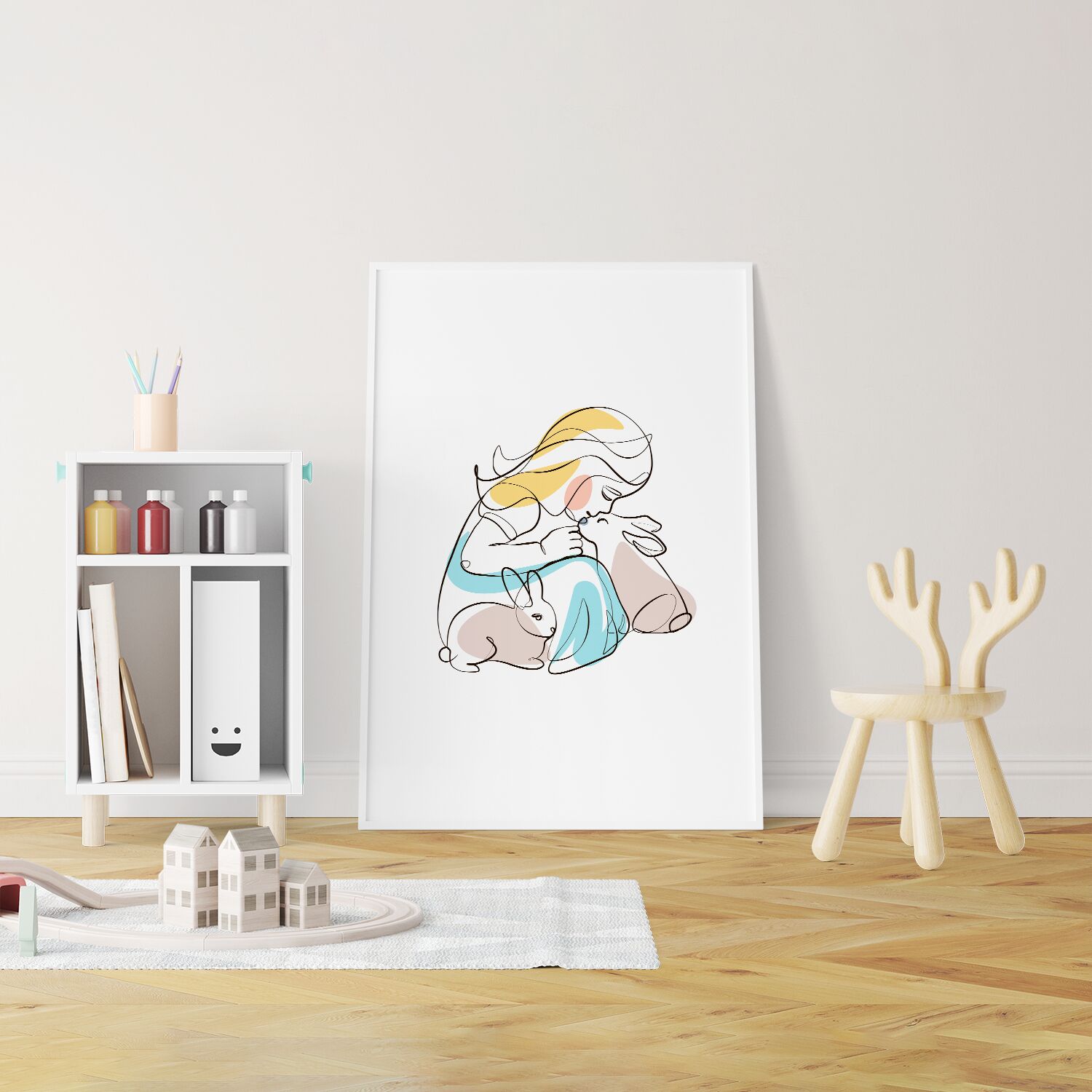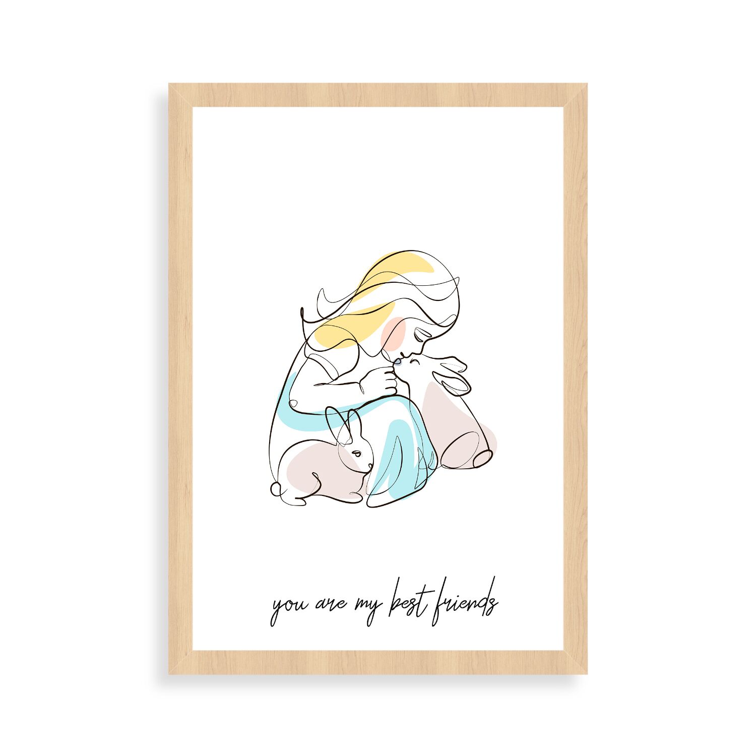 This poster captures a girl kissing her best friend Rabbitt. A classic gift for any friendship.
