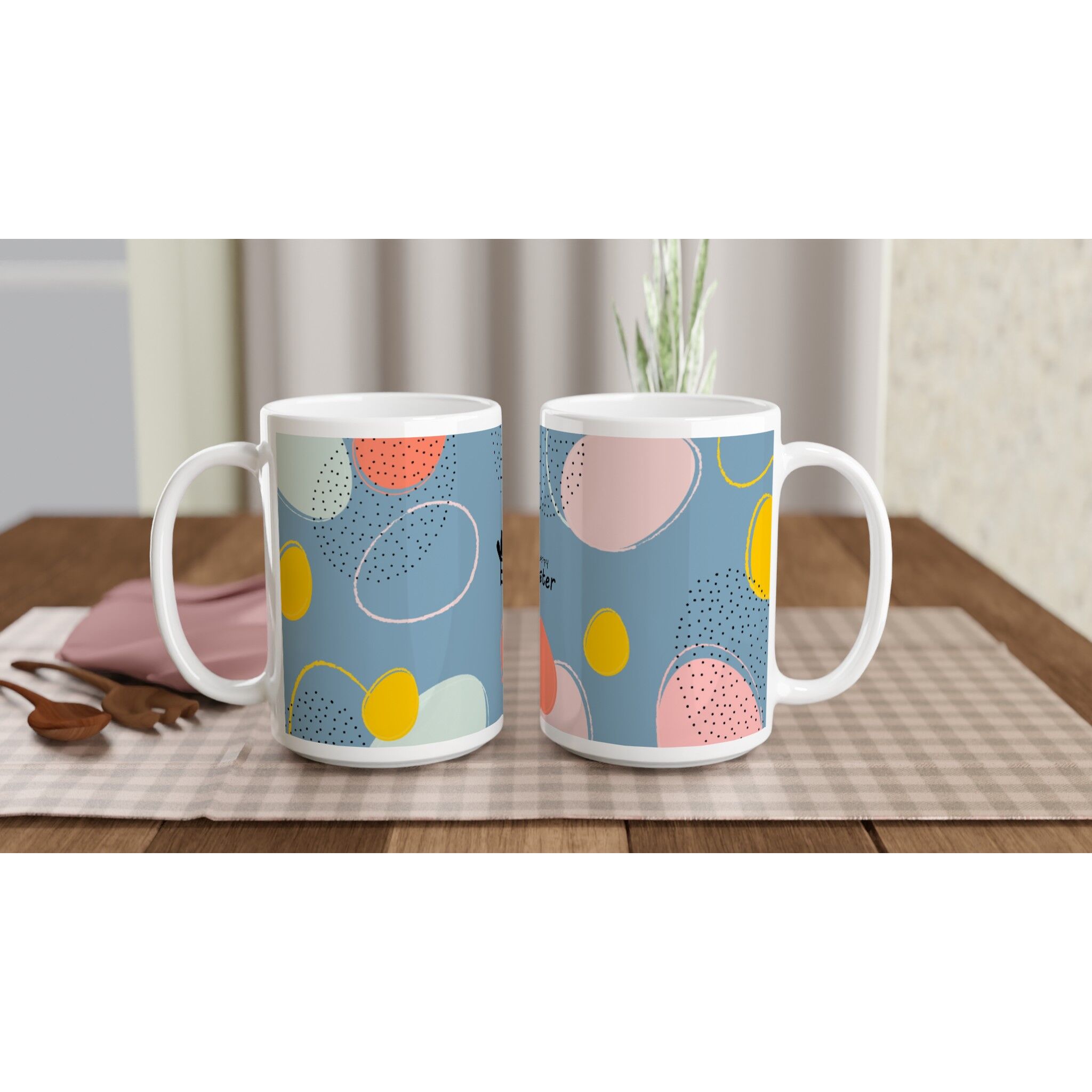 Happy Easter With Fun And Cute Graphic Dog White 15oz Ceramic Mug