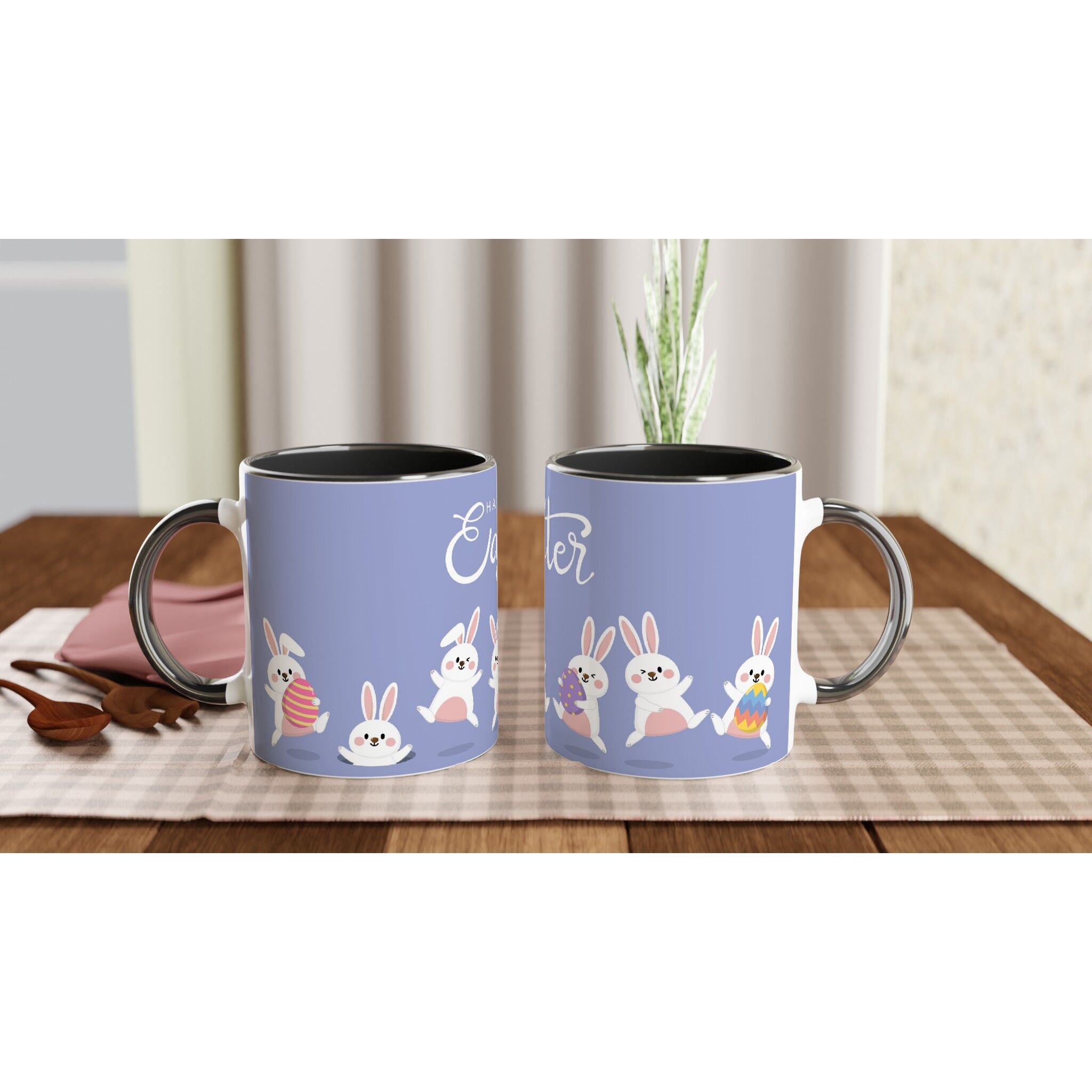 Introducing our Mugs collection – a range of cheerful ceramic mugs that are sure to put a smile on your face. Each mug is crafted with vibrant colors and fun designs to bring happiness and joy to your daily routine. Whether you prefer a smaller or larger size, our collection has a variety of options perfect for enjoying your favorite beverages at home or while traveling. Take, for example, our Happy Easter With Funny Rabbits White 11oz Ceramic Mug with Black Inside. This charming mug is designed to fit comfortably in your hands, providing a delightful experience with every sip of coffee or tea. Its ceramic material ensures durability, while the colorful design adds a touch of brightness to your day.