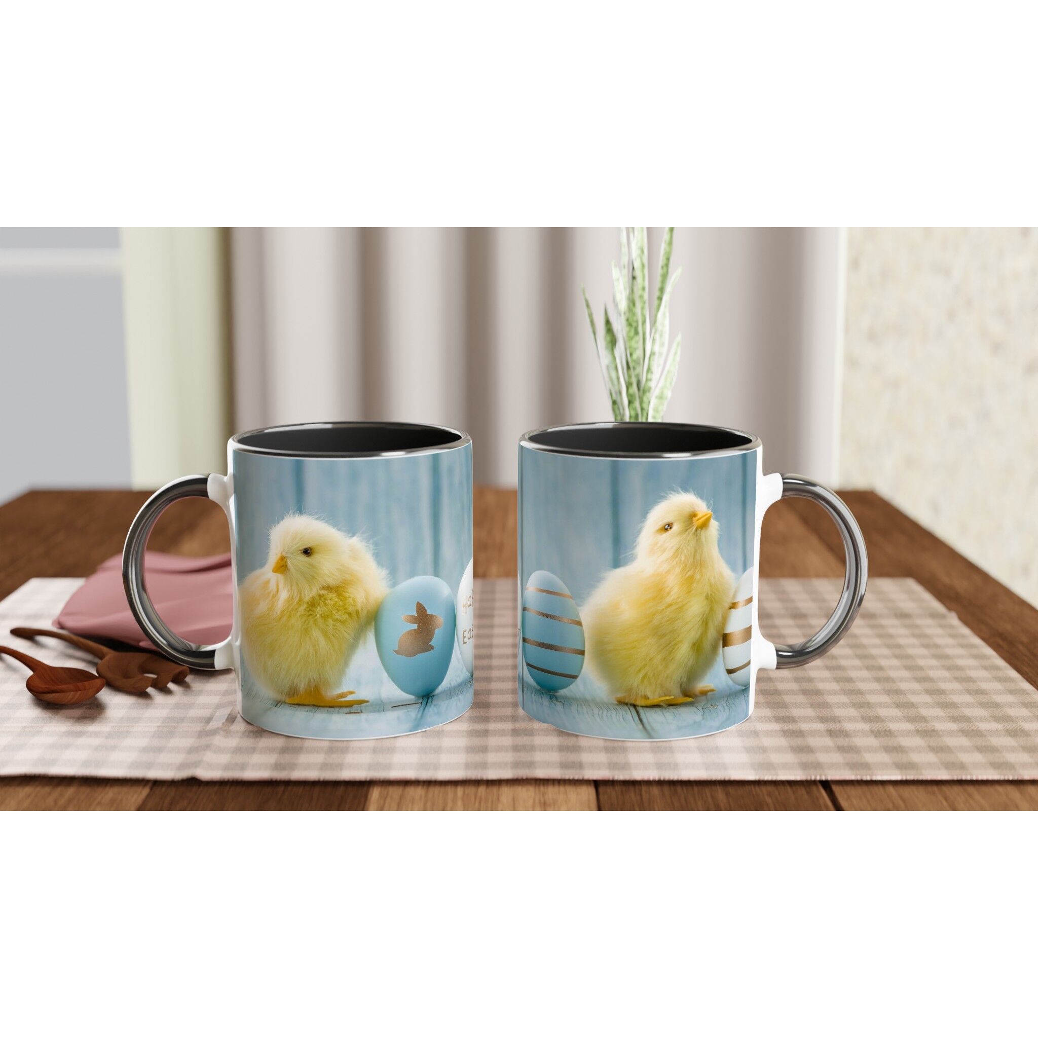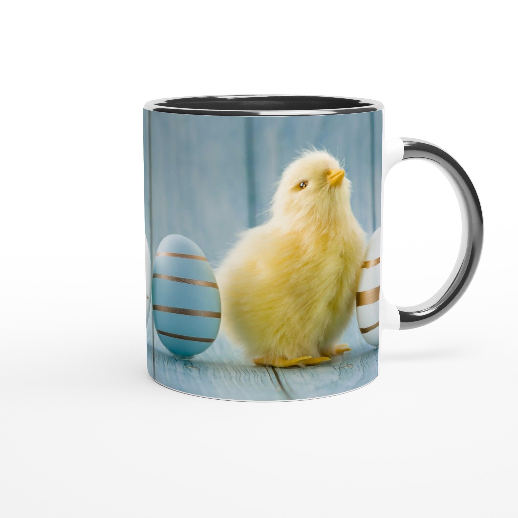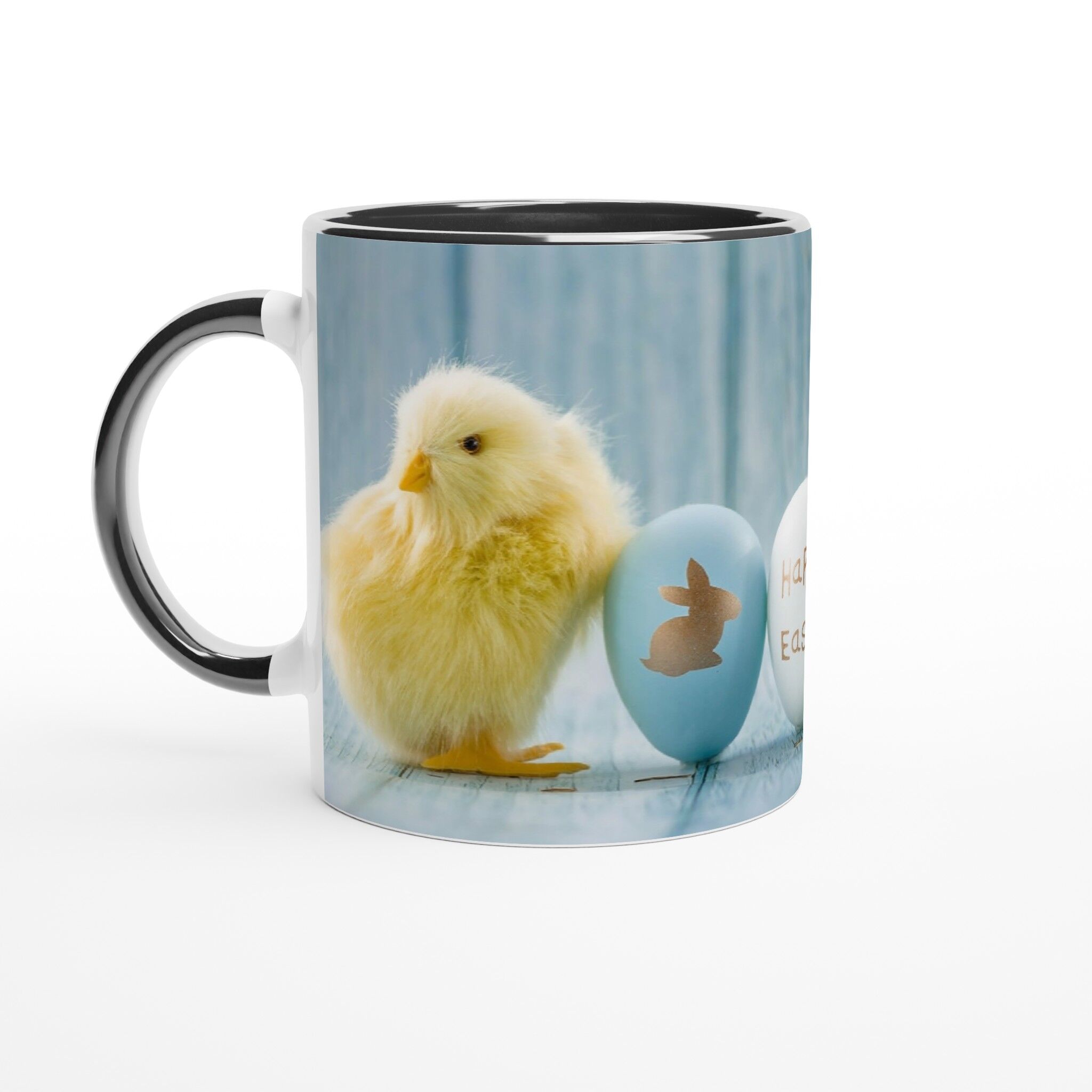 Introducing our ceramic collection of Mugs, designed to add a splash of vibrancy and joy to your daily routine. Whether you prefer your brew at home or on-the-go, our variety of sizes and designs are perfect for any moment. With our Happy Easter With Two Cute Little Chicken White 11oz Ceramic Mug with Black Inside, you’ll experience more than just a regular mug. Crafted from high-quality ceramic and featuring a colorful design, this mug fits snugly in your grip and brings happiness with every sip of your favorite hot beverage. Get ready to start your day with a smile and a burst of brightness with this must-have mug.