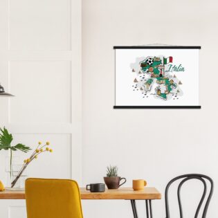 A high-quality poster and a beautiful hanger. Each hanger includes four wooden sticks, two that clamp the top of your print and two that clamp the bottom, and cotton ropes that match the hanger color. Strong magnets securely grip your artwork, while easily allowing the customer to change the art whenever is needed.