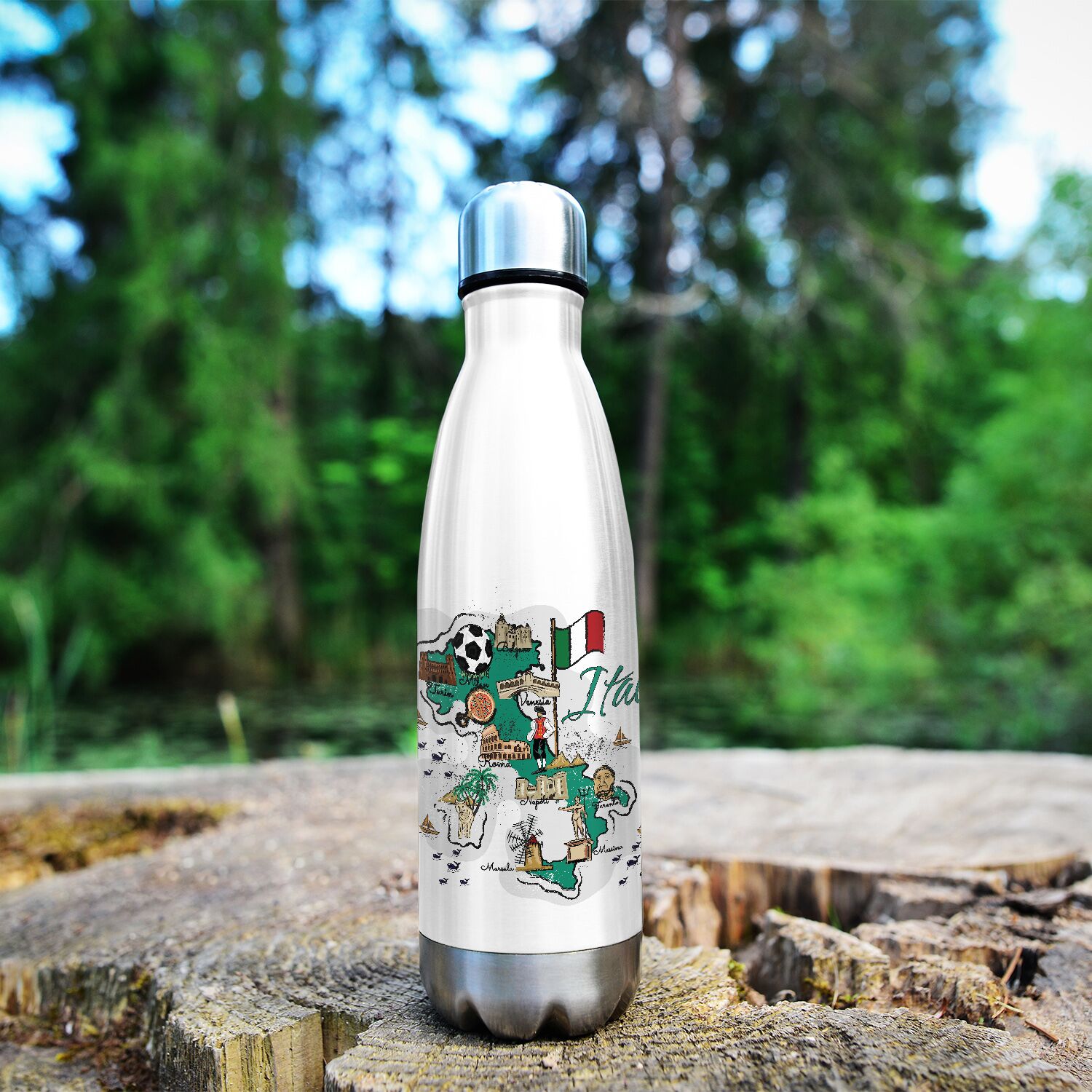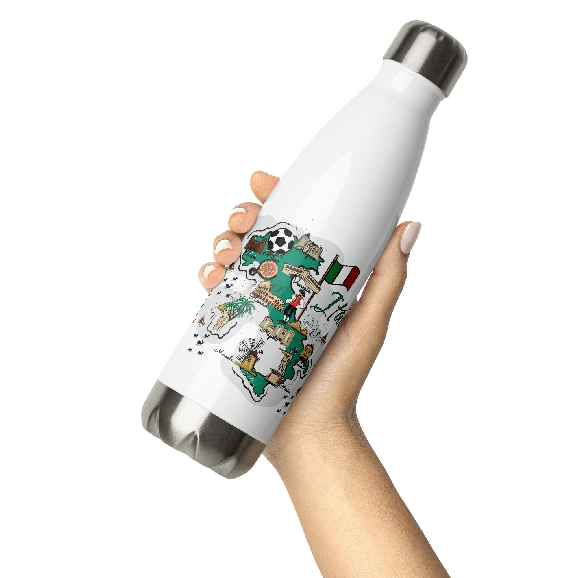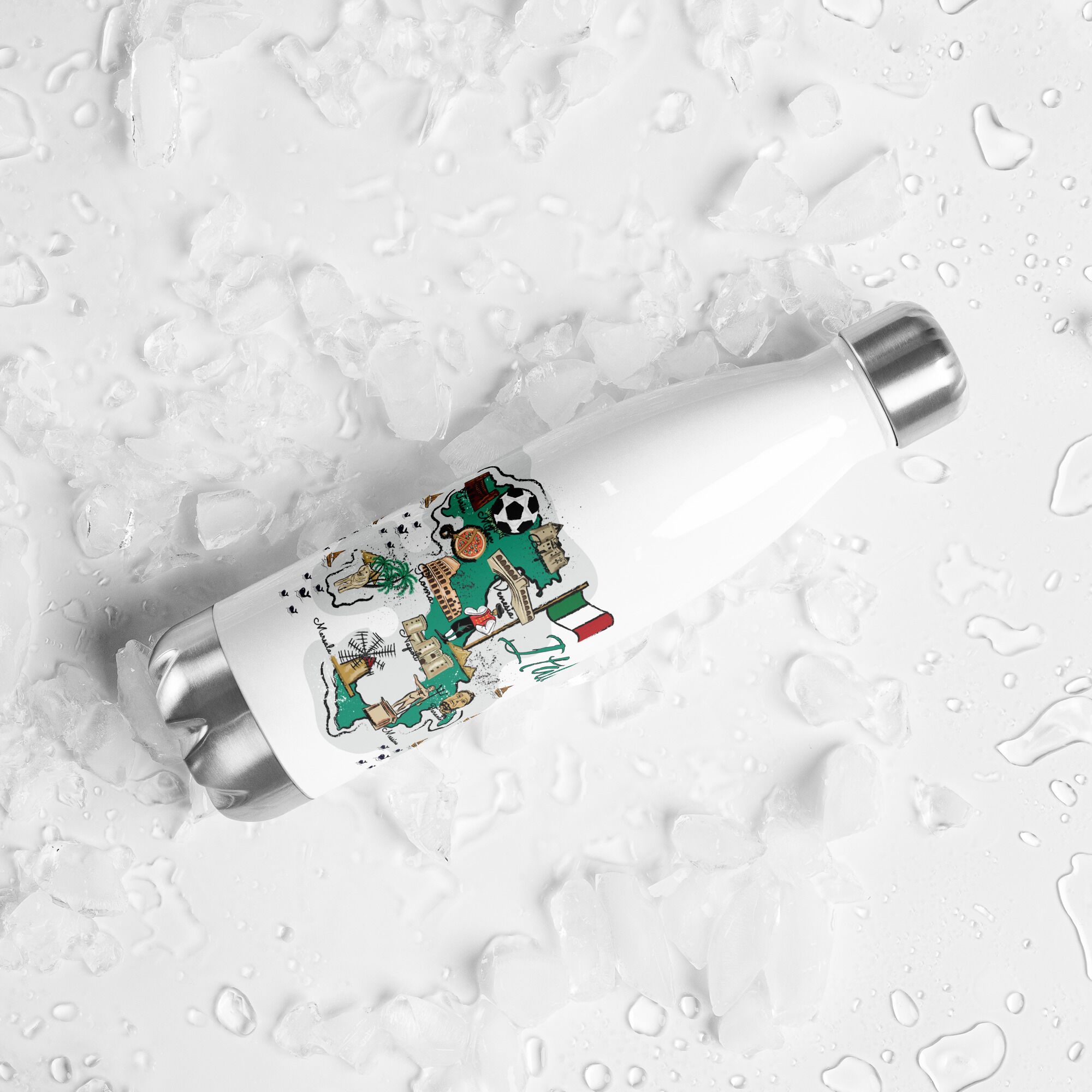 Italy Illustrated Map Stainless Steel Water Bottle