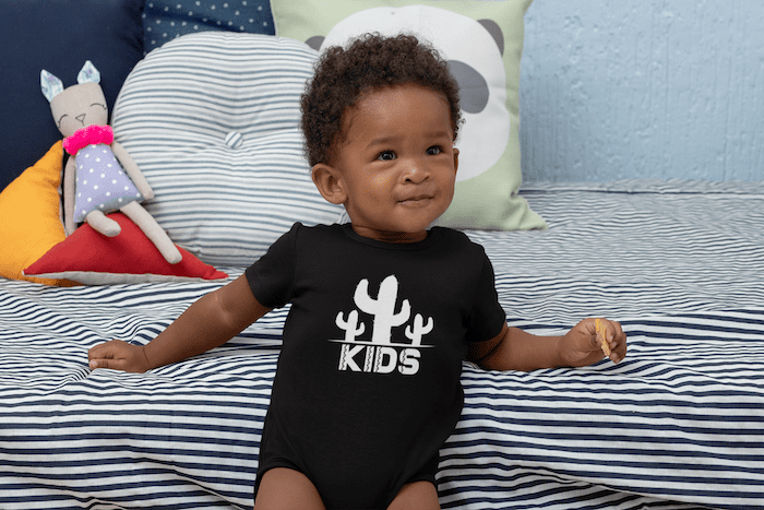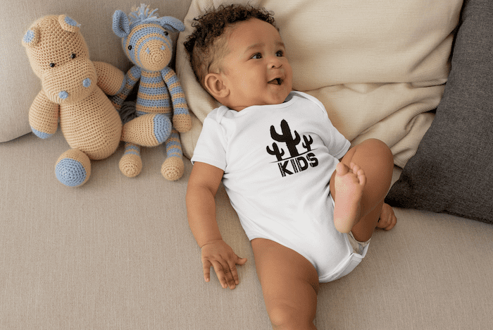 Dress your baby to the nines with this 100% cotton one piece. It has three snap leg closure for easy changing, a comfortable envelope neckline, and a beautiful print that’s bound to get the baby all happy and giggling.