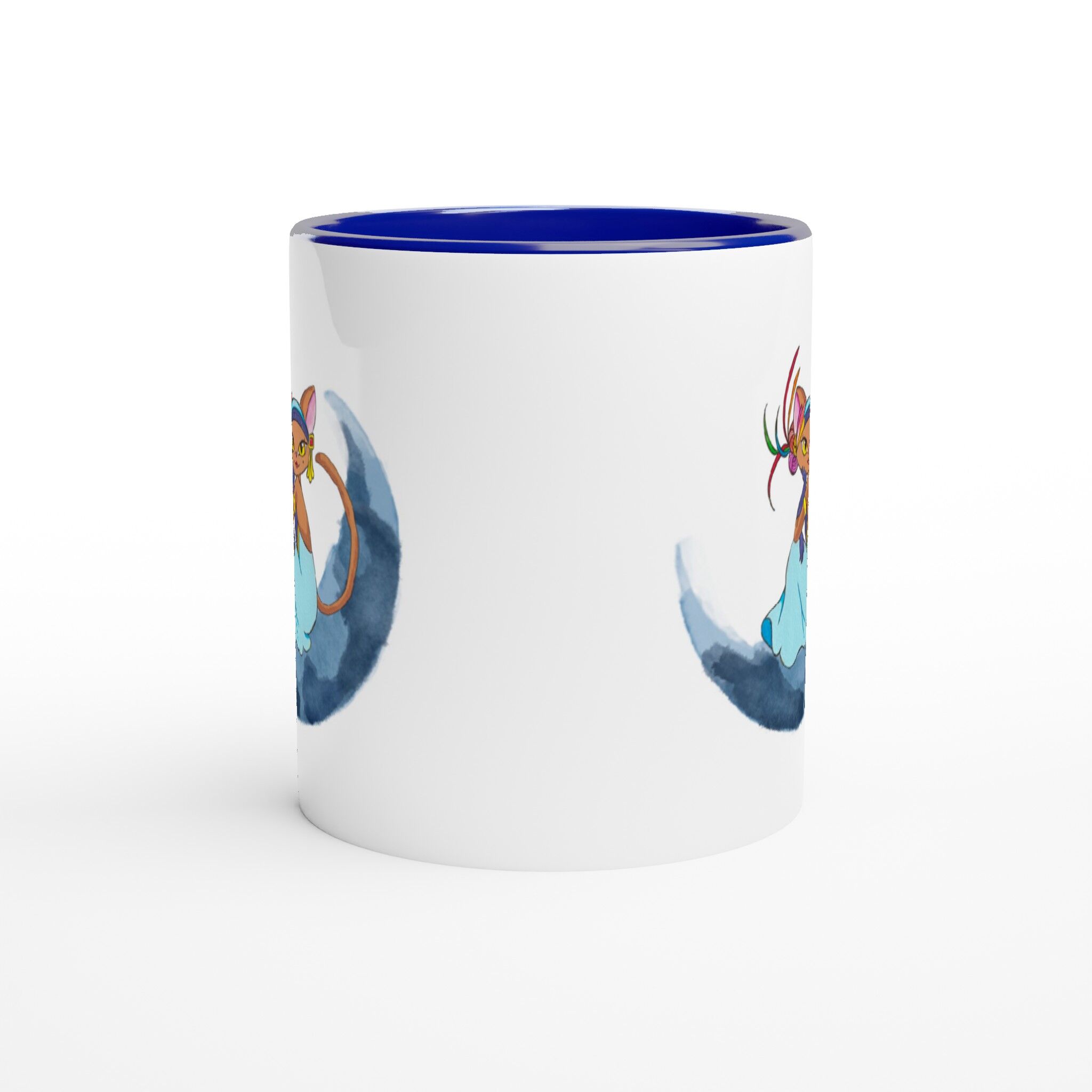 This beautiful ceramic mug is perfect for any event of the day. Your morning coffee, a hot chocolate, or any other hot beverage you enjoy. The mug is glossy white with a colored rim, inside, and handle. The prints come out beautifully and vividly on it. The print retains its quality and luster when used in both microwaves and the dishwasher.