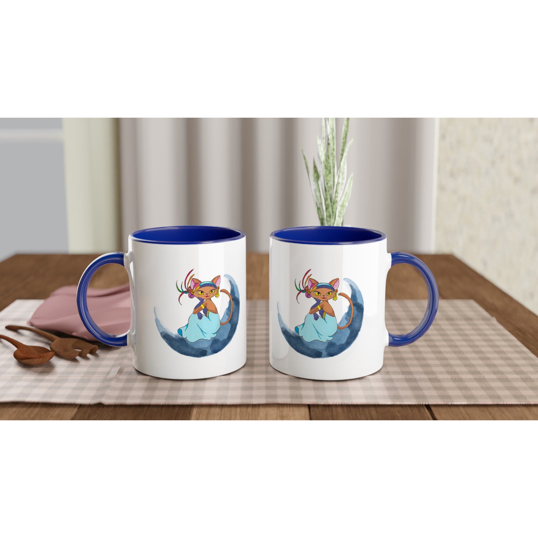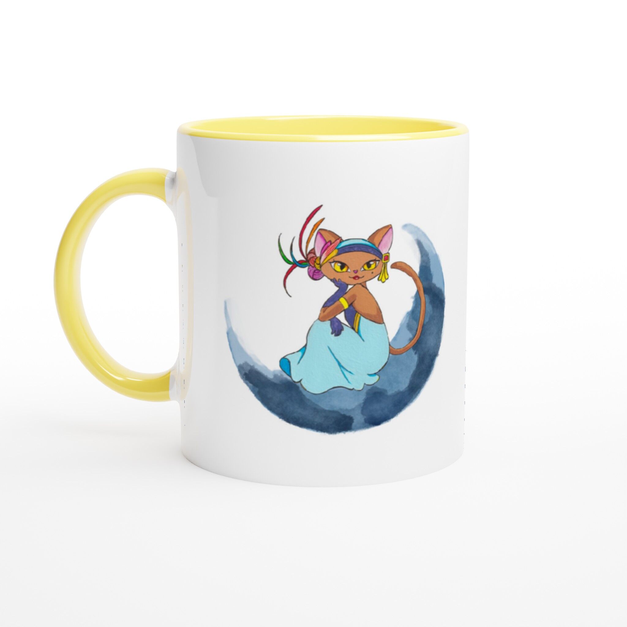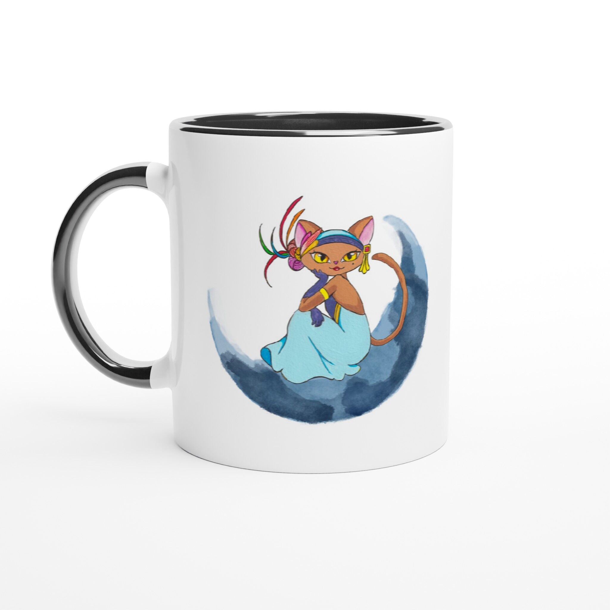 Did you know that there are countless benefits of drinking coffee or tea in a mug? The classic shape has been around for a long time because it works. It does this because it’s comfortable to hold, easy to use and makes you feel good about yourself. This Moon Cat Boho Mug with Color Inside is meant to snuggle in your hands and make you feel happier when drinking coffee or tea out of it. It is made out of ceramic and has a colorful design on it that can brighten your day.
