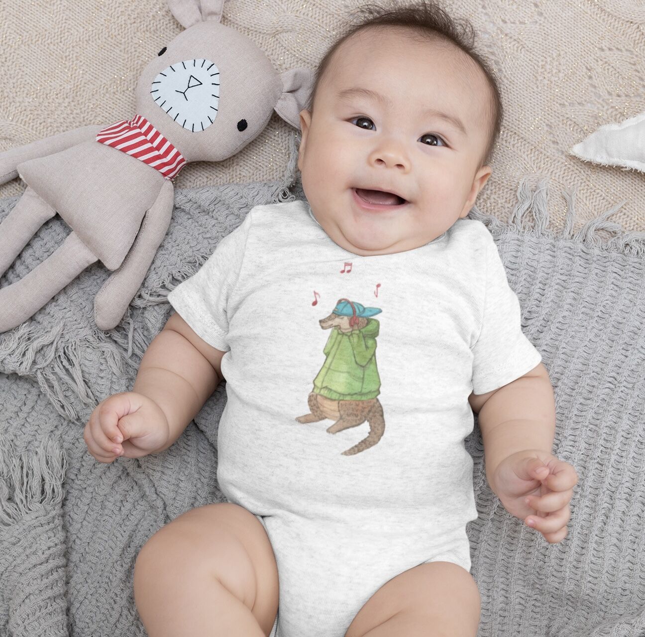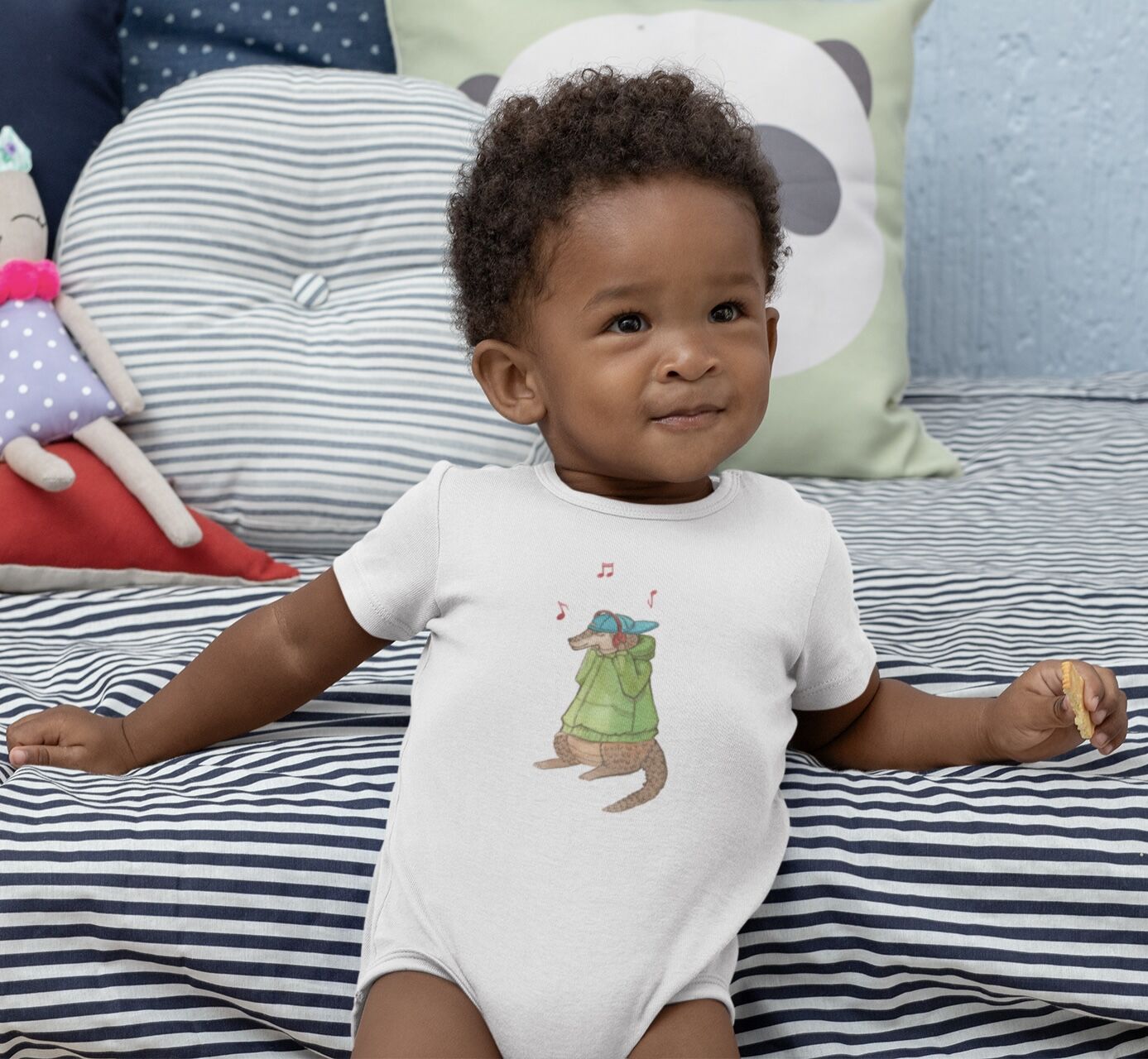 Pangolin Listening to Music Organic Cotton Baby Bodysuit