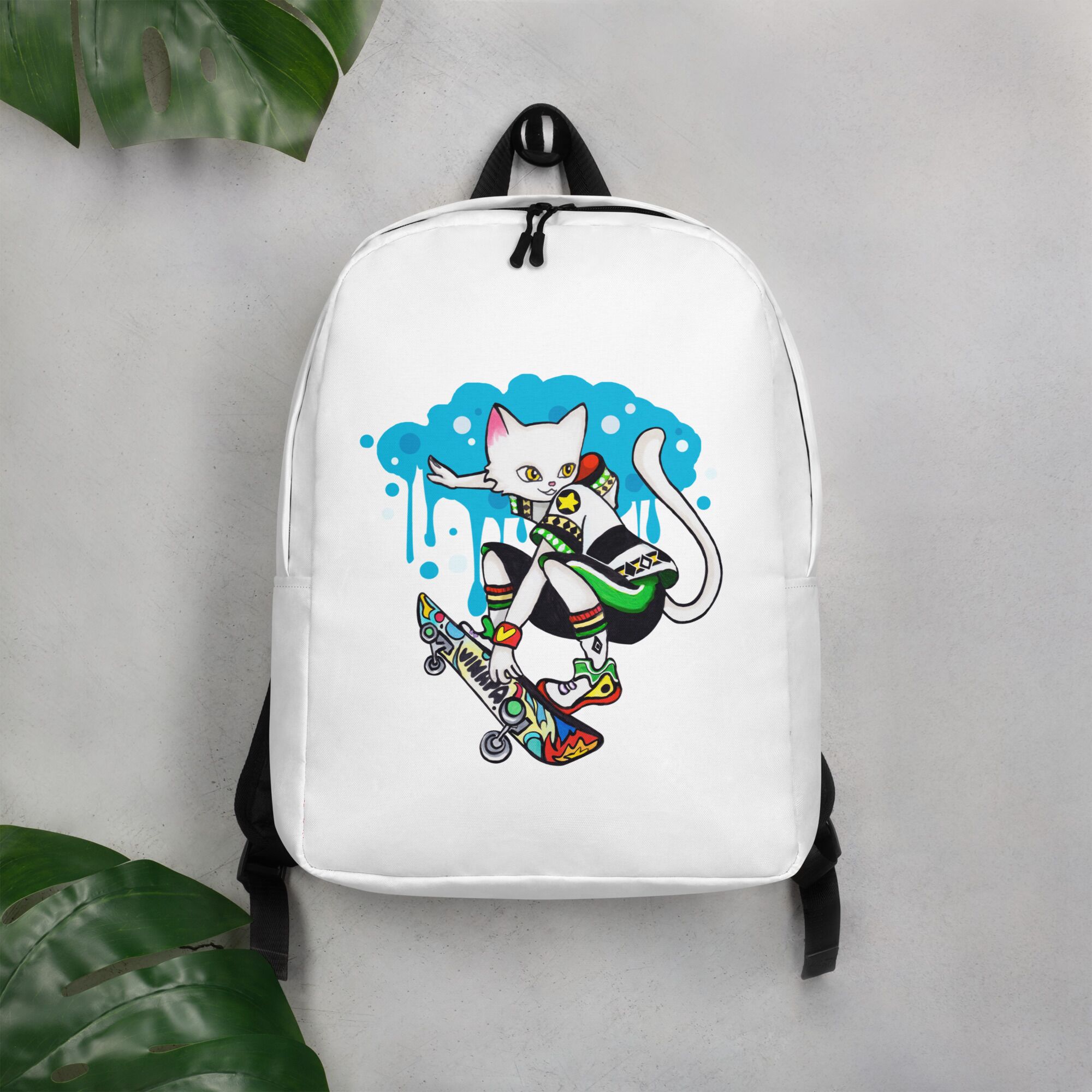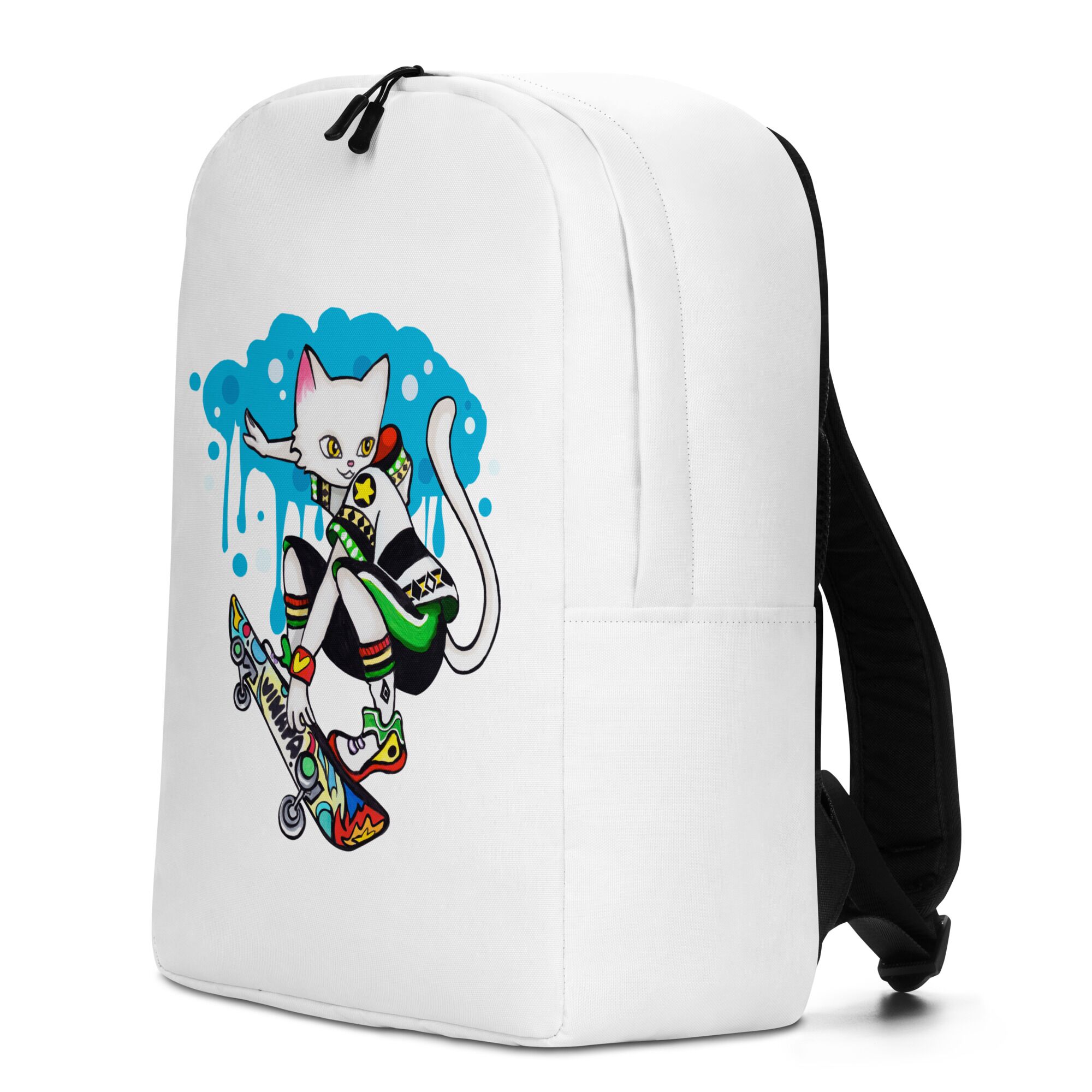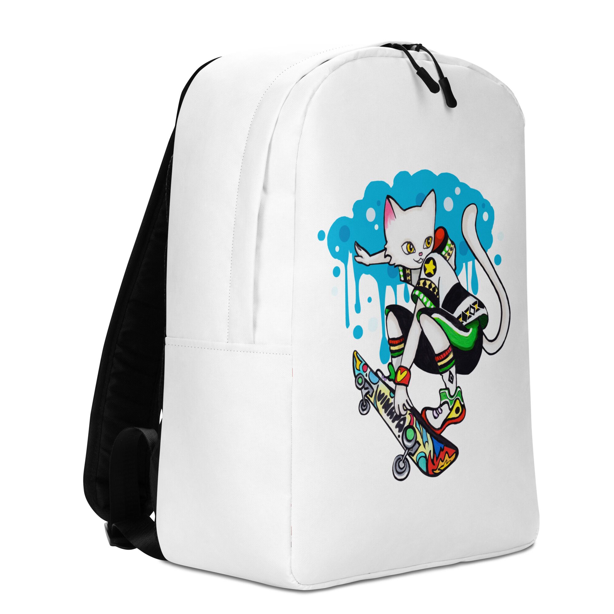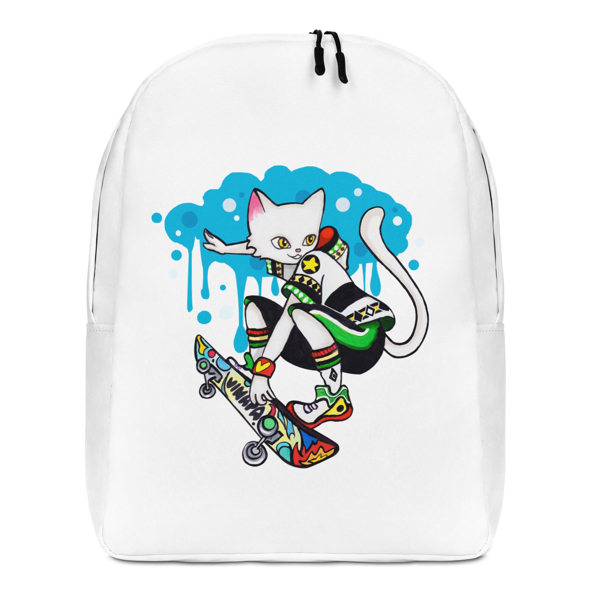 Cool Cat Playing Skateboard Minimalist Backpack For Big Kids