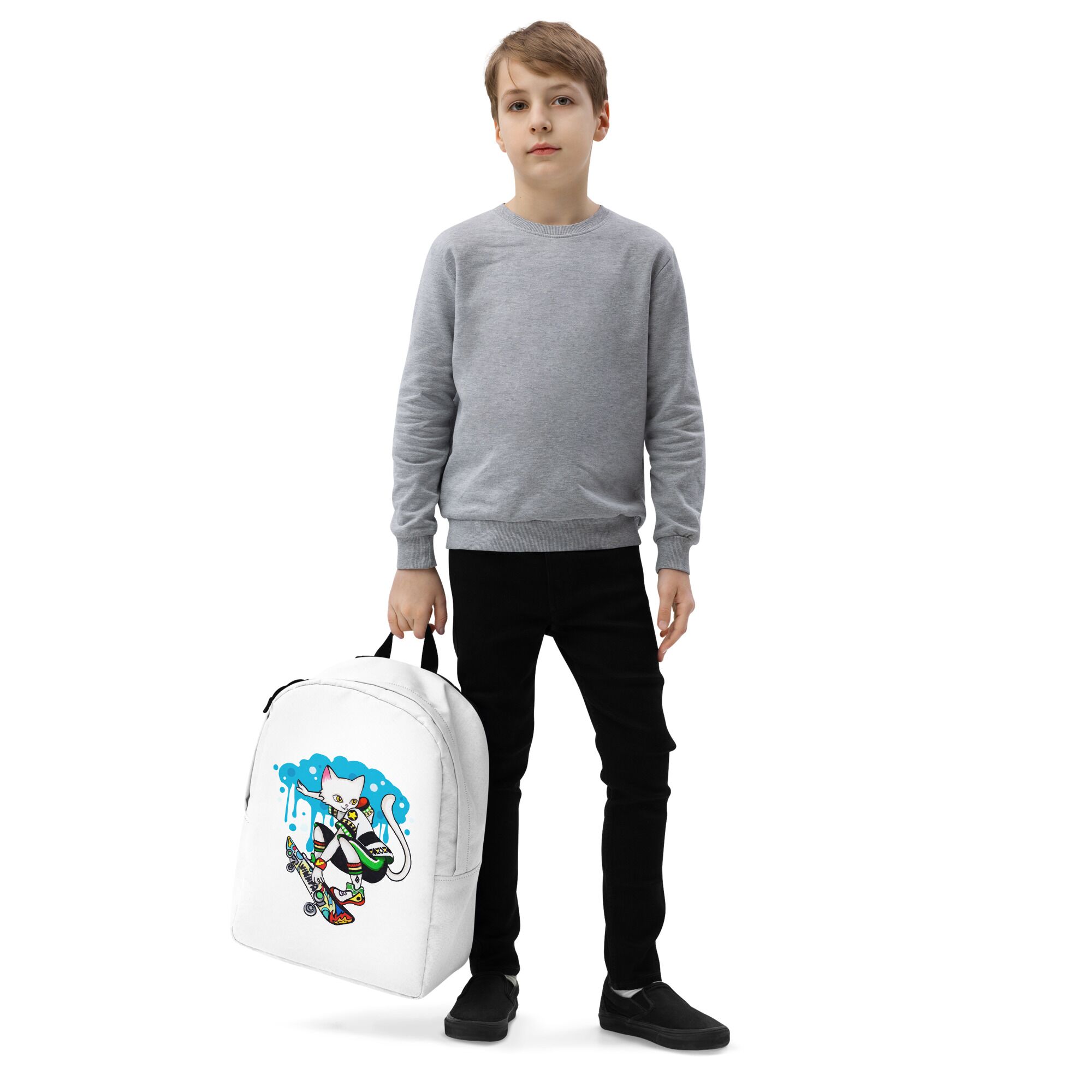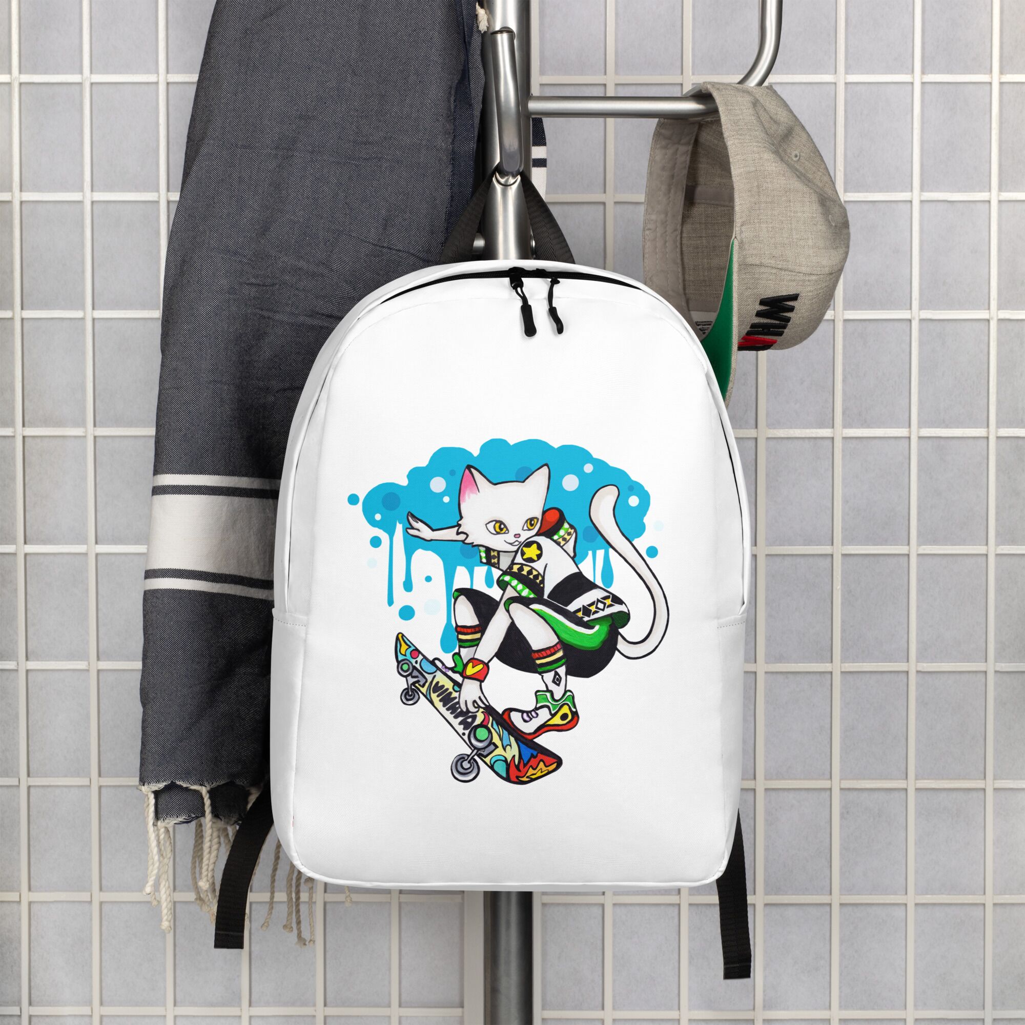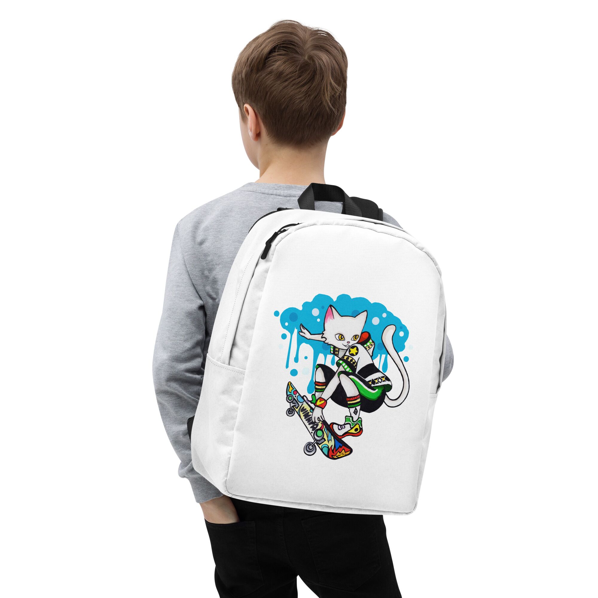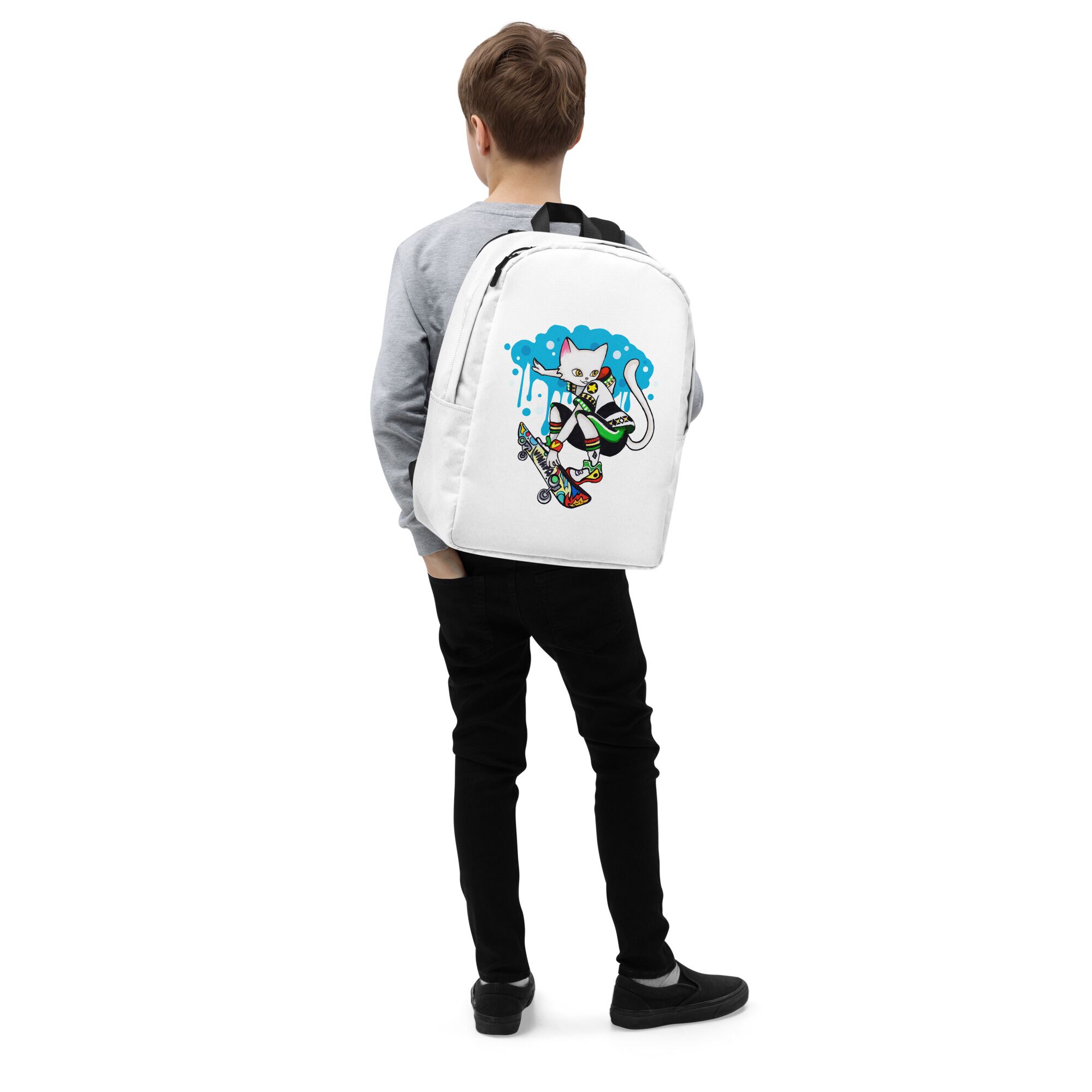 Cool Cat Playing Skateboard Minimalist Backpack For Big Kids