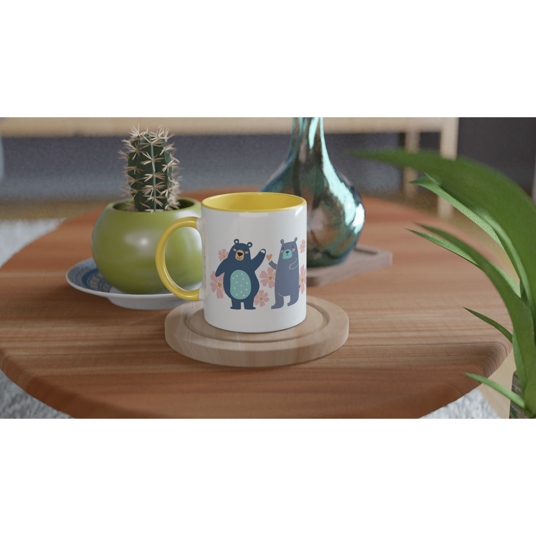 This beautiful ceramic mug is perfect for any event of the day. Your morning coffee, a hot chocolate, or any other hot beverage you enjoy. The mug is glossy white with a colored rim, inside, and handle. The prints come out beautifully and vividly on it. The print retains its quality and luster when used in both microwaves and the dishwasher.